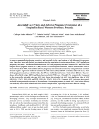 In many economically developing countries, and especially in the rural regions of sub-Saharan African coun-tries, there have been only limited investigations into the association between antenatal care (ANC) and adverse pregnancy outcomes. We obtained information on ANC and pregnancy outcomes between 2011 and 2016 from hospital files of pregnant women (n = 4,960) served at a rural hospital in Rwanda, and we examined the associa-tions between their ANC visits and the adverse pregnancy and neonatal outcomes by using univariate and mul-tivariate logistic regression models to estimate the odds ratios (ORs) and 95% confidence intervals (CIs). Most of the pregnant women had ≥ 4 ANC visits, but 39% (n = 1,911) did not have ≥ 3 visits before delivery. The prev-alence of low birth weight (LBW) and that of preterm birth (PTB) were 12% and 9.9%, respectively. Compared to the women who attended only one ANC visit, those who attended ≥ 4 ANC visits had lower risks of LBW (OR 0.20; 95%CI: 0.11-0.36) and PTB (OR 0.28; 95%CI: 0.11-0.76). Frequent ANC visits were also associ-ated with better postnatal outcomes of the newborns. Encouraging women to attend ANC visits before delivery can markedly reduce PTB-related and LBW-related complications, especially in resource-limited settings.