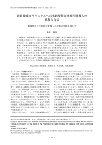 本研究は,教員養成カリキュラムに地域社会との連携に基づく実践的な科目を導入することの意義と方法について,岡山大学教育学部での実践をふまえて論じるものである。全国の大学において,講義中心ではなく学生の主体性を重んじる課題解決型の授業や,地域社会と連携した体験型の授業が増えてきている。また,教員養成においても,学校での体験が重視され,インターンシップが導入され始めるなどの動きが見られるようになった。両者の流れは同じように見えて,教員養成においては体験が学校に限定されている点が異なっている。教員養成という目的の下では,実践や体験の場が学校に限定されるのは当然のようにも思われるが,本研究では,教員養成においても学校外の実践や体験が必要であることを論じたうえで,その考え方に基づいて構想,実践した科目の報告を行う。報告を通して,教員の養成にも学校内だけではなく学校外の実践体験が重要であることを論じていきたい。