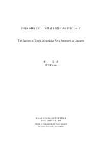 The Factors of Tough Intransitive Verb Sentences in Japanese