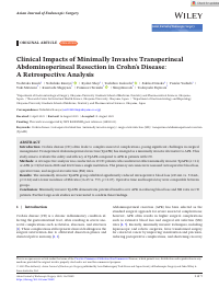 | Citation | Y. Kondo, N. Kanaya, R. Shoji, et al., “ Clinical Impacts of Minimally Invasive Transperineal Abdominoperineal Resection in Crohn's Disease: A Retrospective Analysis,” Asian Journal of Endoscopic Surgery 18, no. 1 (2025): e70149, https://doi.org/10.1111/ases.70149.