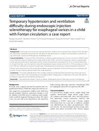 | Abstract | Background : Endoscopic procedures are rarely performed in children with congenital heart disease (CHD); therefore, the associated complications are unknown. We report an abrupt change in circulatory and respiratory condition during endoscopic injection sclerotherapy for esophageal varices.