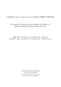 | Title Alternative | Development and Evaluation of the Reliability and Validity of a Japanese Version of the Passive Aggression Scale