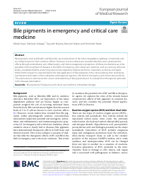 | Abstract | Bile pigments, such as bilirubin and biliverdin, are end products of the heme degradation pathway in mammals and are widely known for their cytotoxic effects. However, recent studies have revealed that they exert cytoprotective effects through antioxidative, anti-inflammatory, and immunosuppressive properties. All these mechanisms are indispensable in the treatment of diseases in the field of emergency and critical care medicine, such as coronary ischemia, stroke, encephalomyelitis, acute lung injury/acute respiratory distress syndrome, mesenteric ischemia, and sepsis. While further research is required before the safe application of bile pigments in the clinical setting, their underlying mechanisms shed light on their utilization as therapeutic agents in the field of emergency and critical care medicine. This article aims to summarize the current understanding of bile pigments and re-evaluate their therapeutic potential in the diseases listed above.