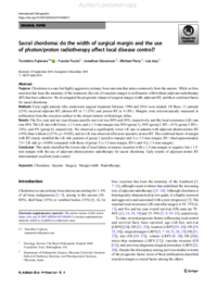 Forty-eight patients who underwent surgical treatment between 1996 and 2016 were studied. Of these, 11 patients (23%) received adjuvant RT; photon RT in 7 (15%) and proton RT in 4 (8%). Margins were microscopically measured in millimetres from the resection surface to the closest tumour on histologic slides.