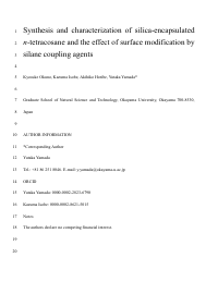 | Citation | Okuno, K., Isobe, K., Horibe, A. et al. Synthesis and Characterization of Silica-Encapsulated n-Tetracosane and the Effect of Surface Modification by Silane Coupling Agents. Int J Thermophys 44, 69 (2023). https://doi.org/10.1007/s10765-023-03179-1