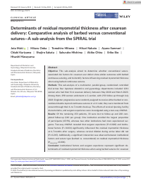 | Citation | Maki J, Ooba H, Mitoma T, et al. Determinants of residual myometrial thickness after cesarean delivery: Comparative analysis of barbed versus conventional sutures—A sub-analysis from the SPIRAL trial. Int J Gynecol Obstet. 2025; 00: 1-8. doi:10.1002/ijgo.70273