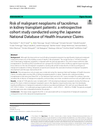 Citation | Kubota, R., Sada, KE., Tokunaga, M. et al. Risk of malignant neoplasms of tacrolimus in kidney transplant patients: a retrospective cohort study conducted using the Japanese National Database of Health Insurance Claims. BMC Nephrol 26, 491 (2025). https://doi.org/10.1186/s12882-025-04405-8