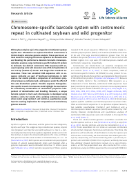 | Abstract | Wild soybean Glycine soja is the progenitor of cultivated soybean Glycine max. Information on soybean functional centromeres is limited despite extensive genome analysis. These species are an ideal model for studying centromere dynamics for domestication and breeding. We performed a detailed chromatin immunoprecipitation analysis using centromere-specific histone H3 protein to delineate two distinct centromeric DNA sequences with unusual repeating units with monomer sizes of 90–92 bp (CentGm-1) and 413-bp (CentGm-4) shorter and longer than standard nucleosomes. These two unrelated DNA sequences with no sequence similarity are part of functional centromeres in both species. Our results provide a comparison of centromere properties between a cultivated and a wild species under the effect of the same kinetochore protein. Possible sequence homogenization specific to each chromosome could highlight the mechanism for evolutionary conservation of centromeric properties independent of domestication and breeding. Moreover, a unique barcode system to track each chromosome is developed using CentGm-4 units. Our results with a unifying centromere composition model using CentGm-1 and CentGm-4 superfamilies could have far-reaching implications for comparative and evolutionary genome research.