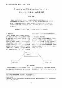 | Abstract | 筆者は,1999年8月から9月にかけて20歳以上55歳以下の女性を対象にメルボルンの2つの中産階層地域において集団加入やパーソナル・ネットワークに関する調査を実施した。本稿では,この調査の概要を説明し,単純集計表を提示した。そして,このデータを用いて,メルボルンヘの流入過程,各種の集団への加入,パーソナル・ネットワークについて検討をおこなった。