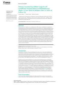 | Citation | Matsuo T, Tanaka T, Takemoto M (October 25, 2025) Primary Lacrimal Sac Diffuse Large B-cell Lymphoma Treated With Local Radiotherapy Alone: A Case With No Relapse After 21 Years of Follow-Up. Cureus 17(10): e95411. doi:10.7759/cureus.95411