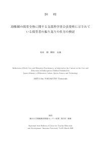 | Title Alternative | Reflections of Early Care and Education Practitioners, as Indicated in the Content on the Care and Education of Kindergarten Children Published by Japan’s Ministry of Education, Culture, Sports, Science and Technology