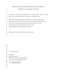 | Abstract | Group C rotavirus (GCRV) is distributed worldwide as an enteric pathogen in humans and animals. However, to date, whole-genome sequences are available only for a human strain (Bristol) and a porcine strain (Cowden). To investigate the genetic diversity of human GCRVs, nearly full-length sequences of all 11 RNA segments were determined for human GCRVs detected recently in India (v508), Bangladesh (BS347), China (Wu82 and YNR001) and Japan (OH567 and BK0830) and analysed phylogenetically with sequence data for GCRVs published previously. All the RNA segments of human GCRV strains except for the VP3 gene showed high levels of conservation (>93 % nucleotide sequence identity, >92 % amino acid sequence identity), belonging to a single genetic cluster distinct from those of animal GCRVs. In contrast, the VP3 genes of human GCRVs could be discriminated into two clusters, designated M2 and M3, that were distinguished phylogenetically from those of porcine and bovine GCRVs (clusters M1 and M4, respectively). Between M2 and M3, amino acid sequence identity of the VP3 gene was 84.1–84.7 %, whereas high identities were observed within each cluster (92.3–97.6 % for M2, 98.2–99.3 % for M3). Sequence divergence among the four VP3 clusters was observed throughout the amino acid sequence except for conserved motifs, including those possibly related to enzyme functions of VP3. The presence of obvious genetic diversity only in the VP3 gene among human GCRVs suggested that either the M2 or M3 VP3 gene of human GCRVs might have been derived through reassortment from an animal GCRV or from an unidentified human GCRV strain belonging to a novel genogroup.