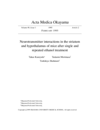 | Abstract | In single treatment study, ethanol was administered intraperitoneally to ICR mice (about 34 g) in the amounts of 1.0, 2.0, 3.0 or 4.0 g/kg body weight. The 3,4-dihydroxyphenylacetic acid (DOPAC) + homovanillic acid (HVA) concentration in the striatum was elevated with 3.0 and 4.0 g/kg of ethanol. In the hypothalamus, the DOPAC, HVA and 5-hydroxyindoleacetic acid concentrations were increased after injection of 3.0 and 4.0 g/kg of ethanol. Furthermore, the acetylcholine (ACh) and gamma-aminobutyric acid (GABA) concentrations were also increased following the injection of 1.0, 2.0, 3.0 and 4.0 g/kg. To study the effects of repeated administration, mice were injected intraperitoneally with 1.0 or 2.0 g/kg of ethanol once daily for 7 days. The DOPAC + HVA level in the striatum was elevated after injection of 1.0 and 2.0 g/kg of ethanol. The GABA and ACh concentrations in the hypothalamus were decreased after repeated injections of ethanol. These results suggest that ethanol significantly alters the utilization of dopamine, ACh and GABA in the hypothalamus. This may partially explain why ethanol has such profound effects on emotional behavior and mood. |