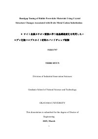 | Title Alternative | Bサイト金属カチオン置換に伴う結晶構造変化を利用したハロゲン化物ペロブスカイト材料のバンドギャップ制御