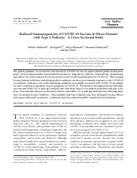 Takahashi H, Eguchi J, Watanabe M, Nakayama M, Wada J. Reduced Immunogenicity of COVID-19 Vaccine in Obese Patients with Type 2 Diabetes: A Cross-Sectional Study. Acta Med Okayama. 2024 Apr;78(2):185-191. doi: 10.18926/AMO/66927.