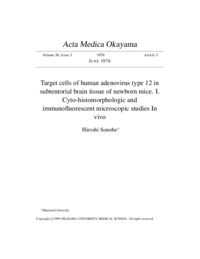 | Abstract | Human adenovirus type 12 (Ad 12) was inoculated through subtentorial route into inbred newborn mice (C3H/BifB/Ki), and sequential changes of the brain and tumor induction were examined by histological and immunofluorescent methods. Two days after virus inoculation, Ad 12 specific tumor antigen (fluorescent T-antigen) appeared in the cells of ependymal and subventricular matrix layers, choroid plexuses and leptomeninges in the subtentorial as well as the supratentorial brains. After 10 days, these fluorescent positive cells decreased gradually in number but still remained focally beneath the ependyma. Sixty days later, early tumor nodules were detected in the same regions in which remained the fluorescent cells. After 107 days, neurological signs and well-developed tumors were noted in 25 of 63 (30.1%) mice examined. In the cerebellum, both of T-antigens and tumors were limited around the IVth ventricle, but not in the granular layers. Histomorphologically, the tumors were of primitive neuroectodermal origin and consisted of the cells resembling immature matrix cells in the subventricular zone. These findings strongly suggest that the virus has a selective affinity to the remaining matrix cells, but not to cerebellar granular cells, at least, in newborn mice. |