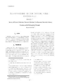 | Title Alternative | Survey of Private Collections “Kyoson Collections” in Okayama University Library: Focusing on His Philosophical Thought