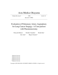 | Abstract | We performed pulmonary artery angioplasty in 19 patients with lung cancer. The procedure consists of segmental or wedge resrection of the infiltrated pulmonary artery stem followed by reconstruction to avoid pneumonectomy and preserve pulmonary function. Among these cases "double sleeve resection" was performed in 10 cases. The 5-year survival of the angioplasty patients was poor at a rate of 11%, but not significantly different from the survival rates for those patients who underwent bronchoplasy alone or pneumonectomy. A promising prognosis may be expected in cases with N0 and N1 lymph node metastasis. However, this procedure may not replace pneumonectmy in patients with intact pulmonary function. |