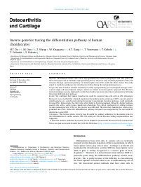| Abstract | Objective: Mammalian somatic cells can be reprogrammed into induced pluripotent stem cells (iPSCs) via the forced expression of Yamanaka reprogramming factors. However, only a limited population of the cells that pass through a particular pathway can metamorphose into iPSCs, while the others do not. This study aimed to clarify the pathways that chondrocytes follow during the reprogramming process.