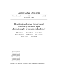 | Abstract | In the present experiments attempts were made to identify semen from various specimens such as the semen itself, spots of semen on clothes, putrefied semen or semen contaminated with blood, menstrual blood, vaginal fluid, according to the techniques of LEVONEN. As the result it has been clarified that in every instance it is possible to isolate and detect the spots of choline by spraying Dragehdorff's reagent. |