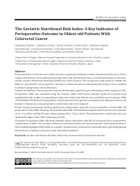 | Abstract | Background/Aim: Colorectal cancer (CRC) presents a significant challenge in oldest-old patients (≥85 years), where surgical intervention carries substantial perioperative risks. Nutritional status is a crucial determinant of outcomes, and the Geriatric Nutritional Risk Index (GNRI) has shown promise. This prospective study aimed to validate the GNRI as a key indicator of perioperative outcomes in oldest-old patients undergoing CRC surgery, and to establish its utility in preoperative risk stratification.
