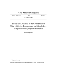 | Abstract | The ongm and characteristics in transmission and morphology of spontaneous lymphatic leukemia in a low-leukemic strain C3Hf have been described. The leukemia line is being currently subjected to a vigorous search for the presence of a filtrable leukemia agent. |