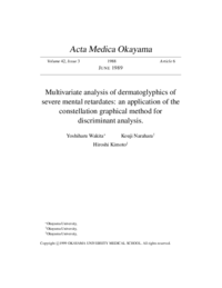 | Abstract | We studied the dermatoglyphics of 353 severe mental retardates (excluding those with chromosomal abnormalities and major limb malformations), using multivariate analysis, to determine how early intrauterine factors are related to the etiology of mental retardation. First, dermatoglyphics were compared between 140 individuals with undefined prenatal factors and 700 normal controls. After 6 and 9 dermatoglyphic traits were chosen as discriminative variables for males and females, respectively, the data were subjected separately for each sex to the constellation graphical method for discriminant analysis. The same formula as obtained in the idiopathic group was subsequently applied to data from cases in other etiological categories. When the misclassification rate was 0.03, the rates of correct classification of the male patients into the etiological categories of undefined prenatal, defined prenatal, perinatal, postnatal and unknown (no anamnestic data available) categories were 19.7% (13/66), 20.0% (3/15), 8.8% (5/57), 5.0% (1/20) and 7.7% (2/26), while the correct classification rates of females were 24.3% (18/74), 42.1% (8/19), 18.9% (7/37), 5.1% (1/16) and 13.0% (3/23), respectively. The results suggest that early intrauterine factors such as those producing dermatoglyphic deviations may contribute to the pathogenesis of severe mental retardation not only in patients with undefined prenatal etiological factors but also in those with perinatal factors, especially those of the female sex. |