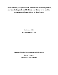 | タイトル(別表記) | ホルスタインおよびジャージーの泌乳期間における乳汁細菌叢,乳成分,代謝プロファイルと牛舎環境細菌叢の変化に関する研究
