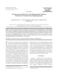| 抄録 | Medication-related osteonecrosis of the jaw (MRONJ) is a side effect in patients taking bone-modifying agents (BMAs), which are highly beneficial for treating osteoporosis and cancer. Bisphosphonates are prescribed to treat secondary osteoporosis in patients with rheumatoid arthritis (RA). We recently encountered two unusual cases of intraoral ONJ in RA patients who had not been treated with a BMA and did not have features of methotrexate- associated lymphoproliferative disorder. Their ONJ stage II bone exposures were treated by conservative therapy, providing good prognoses. These cases indicate that ONJ can occur in RA patients not treated with bisphosphonates. Several risk factors are discussed.