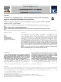 A 16-year-old man commenced HNBC smoking two weeks before admission and subsequently suffered from shortness of breath that gradually worsened. The patient was transferred to emergency department and immediately intubated because of respiratory failure. Computed tomography showed mosaic ground-glass shadows on the distal side of both lungs with a PaO2/FIO2 ratio of 76. The patient required veno-venous extracorporeal membrane oxygenation (ECMO) for severe respiratory failure. He was diagnosed with AEP by clinical course and detection of eosinophils in sputum; thus, methylprednisolone was administrated. The patient was weaned off ECMO four days after initiation and extubated the day after. He fully recovered without sequelae.