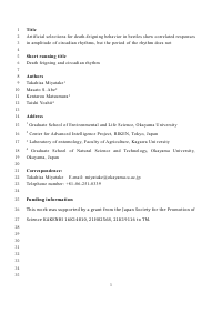 備考 | This is the peer reviewed version of the following article: [Miyatake, T., Abe, M. S., Matsumura, K., & Yoshii, T. (2022). Artificial selections for death-feigning behavior in beetles show correlated responses in amplitude of circadian rhythms, but the period of the rhythm does not. Ethology, 128, 453– 460. https://doi.org/10.1111/eth.13279], which has been published in final form at [https://doi.org/10.1111/eth.13279]. This article may be used for non-commercial purposes in accordance with Wiley Terms and Conditions for Use of Self-Archived Versions. This article may not be enhanced, enriched or otherwise transformed into a derivative work, without express permission from Wiley or by statutory rights under applicable legislation. Copyright notices must not be removed, obscured or modified. The article must be linked to Wiley’s version of record on Wiley Online Library and any embedding, framing or otherwise making available the article or pages there of by third parties from platforms, services and websites other than Wiley Online Library must be prohibited.