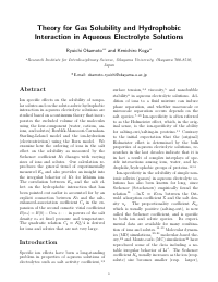 抄録 | Ion-specific effects on the solubility of nonpolar solutes and on the solute–solute hydrophobic interaction in aqueous electrolyte solutions are studied on the basis of a continuum theory that incorporates the excluded volume of the molecules using the four-component (water, cations, anions, and solutes) Boublı́k–Mansoori–Carnahan–Starling–Leland model and ion hydration (electrostriction) using the Born model. We examine how the ordering of ions in the salt effect on the solubility as measured by the Sechenov coefficient KS changes with varying sizes of ions and solutes. Our calculation reproduces the general trend of experimentally measured KS and also provides insight into the irregular behavior of KS for lithium ion. The correlation between KS and the salt effect on the hydrophobic interaction that has been pointed out earlier is accounted for by an explicit connection between KS and the salt-enhanced-association coefficient CI in the expansion of the second osmotic virial coefficient B(ns) = B(0) – CIns + ··· in powers of the salt density ns at fixed pressure and temperature. The quadratic relation is derived for ions and solutes that are not very large.