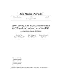 | キーワード | Apurinic/apyrimidinic endonclease; APEX nuclease; Repair enzyme; Apex mRNA; Northen blot; developument; testis; rat