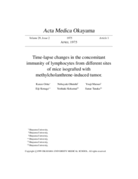 抄録 | As a step in the elucidation of the mutual relationship between the degree of cancer progress and the antitumor activity of lymphocytes from different sites in cancer-bearing body, we isografted methylcholanthrene-induced tumor (MC-tumor) subcutaneously on the back of mice. The regional axillary lymph nodes, spleen and distant mesenteric lymph nodes were removed from these animals one, two, three, and four weeks later. We mixed lymphocytes prepared from these lymphatic tissues with primary MC-tumor culture cells and cultured together to estimate antitumor acitivity of lymphocytes from different sites. It has been found that a strong antitumor activity can be seen only in those regional axillary lymph node cells taken out one or two weeks after tumor transplatation and such an activity is weakened by three or four weeks. On the other hand, distant mesenteric lymph node cells one or two weeks after the transplantation have no antitumor activity as yet, while at the terminal cancer stage of four weeks there appears a stronger antitumor activity than that of regional lymph nodes. In the spleen, a strong antitumor activity can be observed in the third week after tumor transplantation, but the activity disappears by the fourth week. These findings support our previous findings in that for the tumor onset after the transplantation the antitumor activity seems to appear first in the regional lymph nodes, and when the tumor grows beyond a certain size, such an activity diminishes while it appears in further distant lymphatic tissues. |