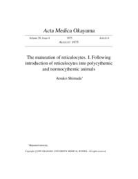 抄録 | Investigations were conducted on the life-span of "stress" reticulocytes and the fate of the early denucleated large-sized reticulocytes in circulating blood. Reticulocyte disappearance was examined after reticulocyte introduction into the vein and into the peritoneal cavity of polycythemic and normocythemic animals. The results indicated that these introduced reticulocytes matured to red cells by about 36 hours after injection under both the polycythemic and normocytehmic conditions. The large-sized reticulocytes disappeared by about 4 to 12 hours after introduction. The maturation of reticulocytes was largely arrested when the cells were introduced into the peritoneal cavity. |