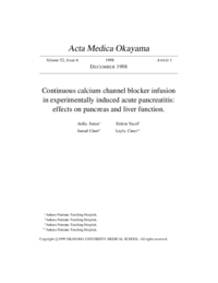 抄録 | In this study we examined the effects of continuous calcium channel blocker (CCB) infusion on pancreatic duct-ligated acute pancreatitis (AP) in rabbits. Thirty rabbits were used for this study. Animals in group 1 (n = 10), which served as a control group, underwent dummy operations and received 0.5 microliter/h normal saline via the internal jugular vein. Animals in group 2 (n = 10) with artificially-induced pancreatitis received the same dosage of saline in the same manner. Animals in group 3 (n = 10) with artificially-induced pancreatitis received 180 micrograms/kg/h CCB (Verapamil) via the jugular vein starting from just before pancreatic duct ligation. AP histology score, plasma amylase levels and liver function tests were measured after 48 h. Verapamil infusion did not prevent the rise in plasma amylase levels, nor did it prevent pancreatic inflammation and damage. Serum levels of serum glutamate pyruvate transaminase, serum glutamate oxalacetate transaminase and alkaline phosphatase were significantly elevated in group 2 and significant reductions were seen in the Verapamil treated animals (group 3). The findings in this study imply that a continuous 180 micrograms/kg/h dose Verapamil infusion does not ameliorate the pathogenesis of pancreatitis induced by ligation of pancreatic duct but do not rule out a dose-dependent protective effect. Meanwhile, the lowering of liver function test scores should be considered the beneficial effect of CCBs, and this should be investigated in further studies. |