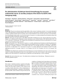 | Citation | Nagao, S., Nishio, S., Takehara, K. et al. Re-administration of platinum-based chemotherapy for recurrent endometrial cancer: an ancillary analysis of the SGSG-012/GOTIC-004/Intergroup study. Int J Clin Oncol 29, 1594–1601 (2024). https://doi.org/10.1007/s10147-024-02585-1