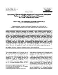 | 抄録 | Several international studies have suggested that treatment of early Parkinsonʼs disease (PD) with a dopamine agonist instead of levodopa delays the occurrence of motor complications. This 5-year prospective, open, multicenter randomized study aimed to compare the effects of cabergoline on the onset of motor complications with those of levodopa in Japanese patients with early PD. Patients who had never been treated with dopamine agonists or levodopa were enrolled in this study. Four of 45 patients in the cabergoline group and 11 of 46 patients in the levodopa group developed motor complications.