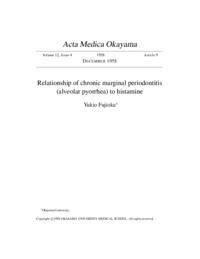 | 抄録 | 1. Considering an imaginable important role of histamine in inflammations or allergic reactions, some clinical and experimental studies were made for the purpose of findings the relationship of the pathological changes of A. P. to local histamine. 2. Gingivae in the case of A. P. showed a remarkable quantitative increase of histamine, compared with those in the case of normal healthy controls. It could be noticed that this increase had an increasing tendency in proportion to the degree of inflammatory pathologic changes in the gingiva. 3. In the gingivae of A. P. an increase of mast cells and their morphologic changes, particularly disintegration, were seen and the grade of changes was almost parallel to an increase of histamine. 4. When a histamine solution was repeatedly injected into the mucobuccal folds of animals, a remarkable increase of histamine and mast cells in the injected gingivae were recognized with inflammatory changes. An increase of gingival histamine could be hardly recognized by means of a simple mechanical stimulation or local anaphylaxis alone. However, in the combination of two, the increase of histamine was seen and relatively remarkable inflammatory changes suggestive of A. P. were macroscopically and microscopically noticed. 5. Topical applications of the ointment mixed with sinomenine, histamine-liberating substance, and benadryl, antihistamine substance, repeated every other day in the gingival pockets, showed favorable effects in slight or early cases of A. P. 6. These observations suggest the existence of both possible role of histamine in the development of local pathologic condition of A. P. and allergic processes in etiologic factors of the disease. |