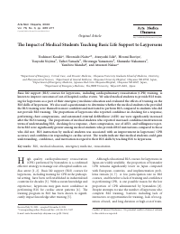 | 抄録 | Basic life support (BLS) courses for laypersons, including cardiopulmonary resuscitation (CPR) training, is known to improve outcomes of out-of-hospital cardiac events. We asked medical students to provide BLS training for laypersons as a part of their emergency medicine education and evaluated the effects of training on the BLS skills of laypersons. We also used a questionnaire to determine whether the medical students who provided the BLS training were themselves more confident and motivated to perform BLS compared to students who did not provide BLS training. The proportions of laypersons who reported confidence in checking for a response, performing chest compressions, and automated external defibrillator (AED) use were significantly increased after the BLS training. The proportions of medical students who reported increased confidence/motivation in terms of understanding BLS, checking for a response, chest compression, use of AED, and willingness to perform BLS were significantly greater among medical students who provided BLS instructions compared to those who did not. BLS instruction by medical students was associated with an improvement in laypersons’ CPR accuracy and confidence in responding to cardiac arrest. The results indicate that medical students could gain understanding, confidence, and motivation in regard to their BLS skills by teaching BLS to laypersons.