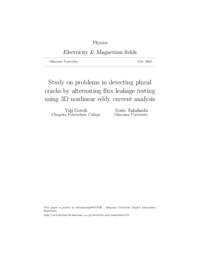| 抄録 | The alternating magnetic flux leakage testing is used for the detection of cracks in a steel plate. A new technique of how to detect plural cracks, which are located at a very short distance from each other, using the parallel (x-) component of the leakage flux density is proposed. The behavior of leakage flux is examined using a three-dimensional edge-based hexahedral finite-element method. The effects of dimensions of search coils and cracks on the detection accuracy are illustrated. |