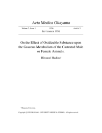 | 抄録 | 1) The gaseous metabolism of guinea pigs (male and female) decreases to a certain extent after the removal of sexual glands, but it increases temporarily through the administration of the extract (of testis or ovary), up to the normal value as before the operation. 2) The testis extract has a little influence on increasing the gaseous metabolism of the ovariectomised guinea pigs and it is also temporary. 3) The oxidizable substances cause the gaseous metabolism of ovariectomised guinea pigs to increase markedly. 4) The gaseous metabolism of the castrated male is increased under the administration of the oxidizable substance of certain plant juices and the ratio of increase is proportional to the quantity of the oxidizable substance given, and the more, if the testis extract be added together. 5) The gaseous metabolism of the castrated animals fed with the basal diet free from vitamin C tends to diminish again. This diminished gaseous metabolism is only restored to the former level or more by the administration of vitamin C. |