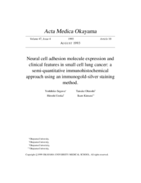 | 抄録 | The neural cell adhesion molecule (NCAM) is a family of cell surface sialoglycoproteins mediating homotypic and heterotypic cell-cell adhesion. In tumors, NCAM is supposed to be involved with the malignant features characterized by invasive growth and metastasis. In the present study, we evaluated the correlation between NCAM expression of tumors obtained from small cell lung cancer (SCLC) patients and the clinical outcome. NCAM expression was determined semi-quantitatively by an immunogold-silver staining method using the SCLC cluster 1 monoclonal antibody NCC-LU-243. Of 20 SCLC patients studied, six patients with tumors with high NCAM expression had a poor response to chemotherapy, and a short disease-free (p = 0.011) and overall (p = 0.003) survival as compared with 14 patients having tumors with low NCAM expression. These findings indicate that the therapeutic outcome of SCLC may be partly predicted by determining the NCAM expression of the tumor. |