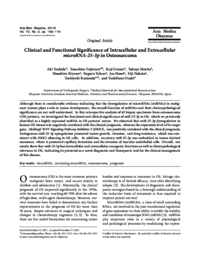 | 抄録 | Although there is considerable evidence indicating that the dysregulation of microRNAs (miRNAs) in malignant tumors plays a role in tumor development, the overall function of miRNAs and their clinicopathological significance are not well understood. In this retrospective analysis of 45 biopsy specimens from osteosarcoma (OS) patients, we investigated the functional and clinical significance of miR-25-3p in OS, which we previously identified as a highly expressed miRNA in OS patients’ serum. We observed that miR-25-3p dysregulation in human OS tissues was negatively correlated with the clinical prognosis, whereas the expression level of its target gene, Dickkopf WNT Signaling Pathway Inhibitor 3 (DKK3), was positively correlated with the clinical prognosis. Endogenous miR-25-3p upregulation promoted tumor growth, invasion, and drug resistance, which was consistent with DKK3 silencing in OS cells. In addition, secretory miR-25-3p was embedded in tumor-derived exosomes, where it promoted capillary formation and the invasion of vascular endothelial cells. Overall, our results show that miR-25-3p has intracellular and extracellular oncogenic functions as well as clinicopathological relevance in OS, indicating its potential as a novel diagnostic and therapeutic tool for the clinical management of this disease.
