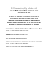 | タイトル(別表記) | 骨髄由来間葉系幹細胞移植は脳虚血モデルマウスのタンパク処理機構をオートファジーからユビキチン・プロテアソーム系へスイッチする