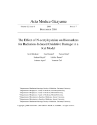 | 抄録 | Our study aimed to investigate the potential radioprotective effects of N-acetylcysteine (NAC) by comparing its biochemical effects with those of WR-2721, as a representative of clinically used radioprotectors, in preventing oxidative damage caused by gamma irradiation (single dose, 6Gy) in normal rat tissue. The rats (n=40) were divided randomly and equally into 4 groups:Control (C), Radiation (R), R+NAC (received irradiation and 1,000mg/kg NAC) and R+WR-2721 (received irradiation and 200mg/kg WR-2721) rats. Liver tissues and blood samples were harvested and utilized for reduced glutathione (GSH), malondialdehyde (MDA) and myeloperoxidase (MPO) detection. Serum and tissue GSH levels of R rats decreased compared to those of other groups (p<0.01). Tissue MDA levels of R+NAC and R+WR-2721 rats decreased compared to R rats (p<0.01;p<0.05, respectively). Tissue MPO activities of R+NAC and R+WR-2721 rats were higher than those of R rats (p<0.001). Serum MPO levels of R+WR-2721 rats were lower than those of C rats and R rats (p<0.01, p<0.001, respectively). In conclusion, the study suggests that the radioprotective effect against radiation-induced oxidative damage of NAC may be similar to that of WR-2721. |
