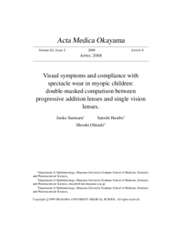 | 抄録 | The aim of this study is to clarify visual symptoms and compliance with spectacle wear in children kusing progressive addition lenses (PALs). Ninety-two children, participating in a randomized, doublemasked, crossover trial to determine whether PALs reduce myopia progression (mean+/-SD age: 11.0+/-1.6 years; refractive errors: 3.11+/-1.34 D), wore PALs (1.50 D near addition) or single vision lenses (SVLs) for 18 months, alternately. A questionnaire survey was performed 6 and 12 months after the beginning of the use of the lenses (6-month survey), and the results were compared between PAL- and SVL-wearing periods. In the PAL-wearing period, the children reported difficulty in adapting to newly provided spectacles (36%), disturbances in distance vision (22%), vertigo in the lateral gaze (11%), and difficulty in ascending and descending stairs (9%). However, the frequency of these symptoms was not significantly different from that reported in the SVL-wearing period. There was no difference in compliance with spectacle wear between the PAL- and SVL-wearing periods, and 98% of the children wearing PALs reported excellent compliance. The results of this study indicate that, compared with SVLs, the PALs provide a similar level of comfort and compliance with spectacle wear for myopic children. |