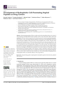 | Citation | Tsuchiya, K.; Horikoshi, K.; Fujita, M.; Hirano, M.; Miyamoto, M.; Yokoo, H.; Demizu, Y. Development of Hydrophobic Cell-Penetrating Stapled Peptides as Drug Carriers. Int. J. Mol. Sci. 2023, 24, 11768. https://doi.org/10.3390/ ijms241411768